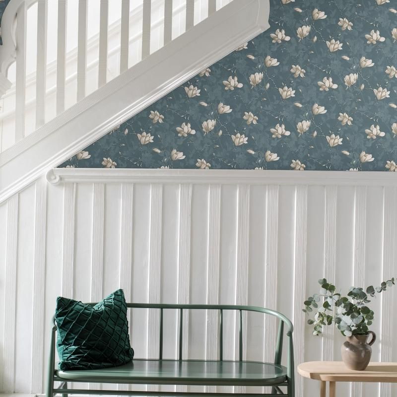 マグノリア(木蓮)はロマンチックな「ユリの木」とよく呼ばれます。そのマグノリアを描いた名作壁紙「Lily Tree 」(リリー・トゥリー)は繊細な美しさと絶妙な愛らしさを備えています。 暗めのシルエットにきらめく光の反射を取り入れて目を奪われることでしょう。4色展開のうちのブルー。スウェーデンの秋冬の暗い季節に自宅の壁を彩りたくなる壁紙をイメージしたIn Bloom (イン・ブルーム)コレクションより。デザイン:Jenny Hahne Gadd (ジェニー・ハーネ・ガッド)。In Bloomコレクションは雑誌「Plaza Interier」による2018年「今年の壁紙コレクション」賞受賞。