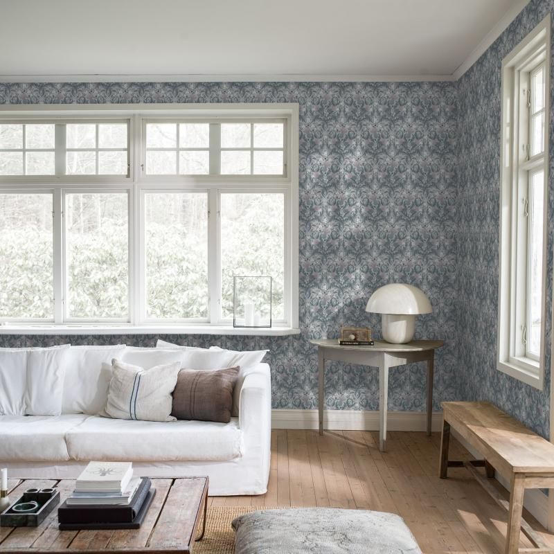 繊細に描かれたアザミをあしらった壁紙「Thistle」は、エレガントな東洋の美も感じさせます。水彩画の色調に見事な変化をもたらしている印刷技術による表面も特徴のひとつ。3色展開のうちのブルー。スウェーデンの秋冬の暗い季節に自宅の壁を彩りたくなる壁紙をイメージしたIn Bloom (イン・ブルーム)コレクションより。デザイン:Jenny Hahne Gadd (ジェニー・ハーネ・ガッド)。In Bloomコレクションは雑誌「Plaza Interior」による2018年「今年の壁紙コレクション」賞受賞。
