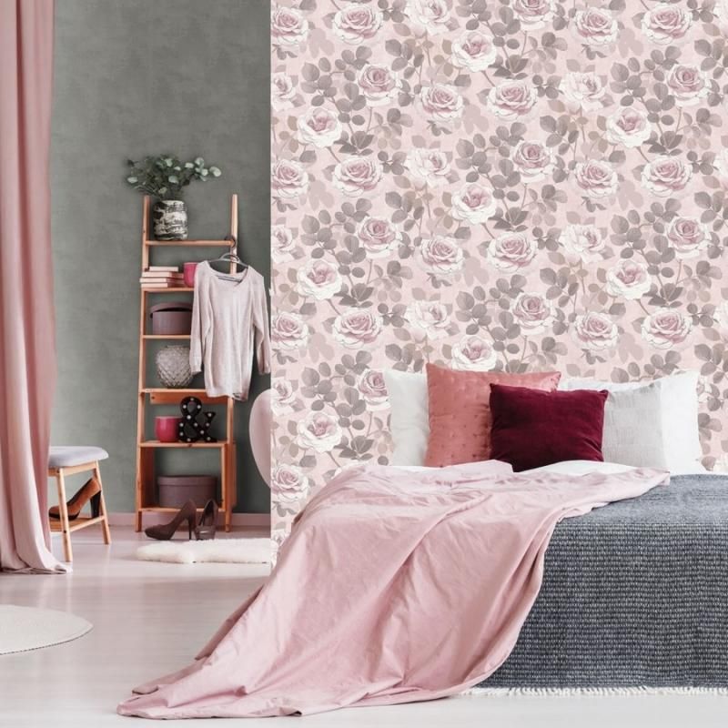 抑えた色調がとても新鮮なイメージの薔薇の壁紙。3色展開のうちのライト・ピンクの背景にピンクの薔薇。落ち着いたカラー・パレットで構成された、普通の花柄とは一味違うアプローチの花をテーマにした「Solitar」(ソリティア)コレクションより。