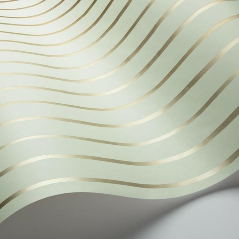 陶器の世界からインスピレーションを受けた壁紙「College Stripe」(カレッジ・ストライプ)。自然に流れるインクのラインを捉えて自由な美しさがあります。繊細な濃淡のグラデーションは深みを与えています。4色展開のうちのダックエッグ・グリーン/ゴールド&シルバー。シンプルな中に遊び心を兼ね備えた英国人気質を感じさせるストライプ柄コレクション「Marquee Stripes」より。