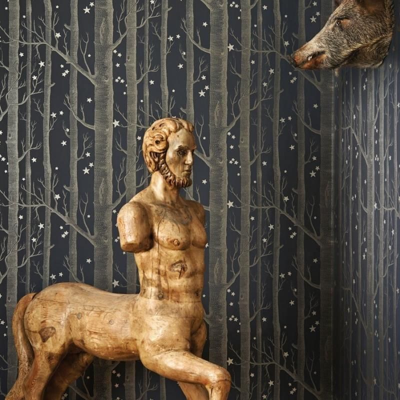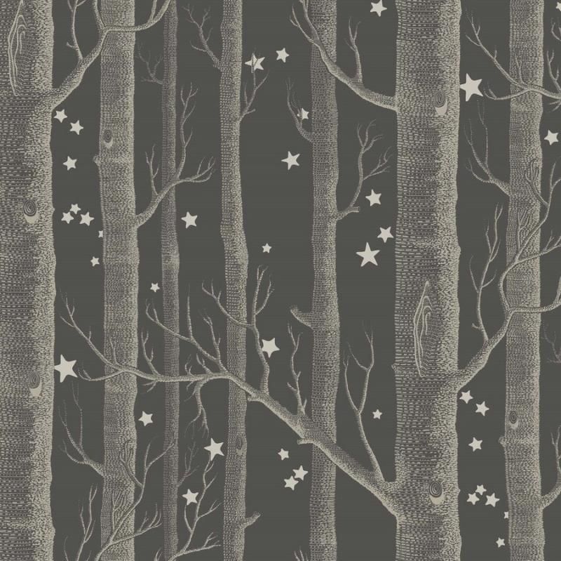 ドリーミーな雰囲気の「Woods&Stars」(ウッズ・アンド・スターズ)は、Cole&Son(コール・アンド・サン)のクラシック柄のふたつを組み合わせた壁紙です。7色展開のうちのチャコール・グレー/ゴールド&シルバー。Cole & Son (コール・アンド・サン) 社の得意とする、ウィットに富んだ“Whimsical”(ウィムジカル)=気まぐれというタイトルの壁紙コレクションは、子供時代に読んだ奇想天外な物語に触発された、ノスタルジックなテイストをもった絵柄が収蔵されています。