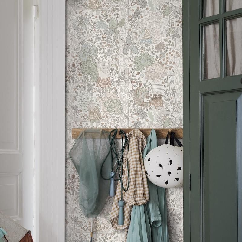 カラフルな洋服を着たリスたちが揺れたり、逆さまにぶら下がったり、どんぐりを集めたり・・・明るく鮮やかな色合いの手描きの壁紙「Charlie」(チャーリー)です。物語が子供の想像力をかきたてます。4色展開のうちのブラウン。「一枚の壁紙から、千の物語」、子供部屋にぴったりの壁紙コレクション「Scandinavian Designers Mini」(スカンジナビアン・デザイナーズ・ミニ)より。デザイン:Amanda Nordblad (アマンダ・ノルドブラッド)