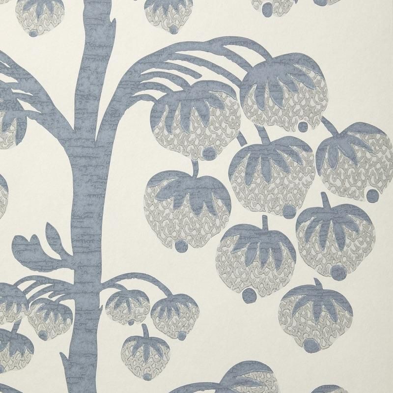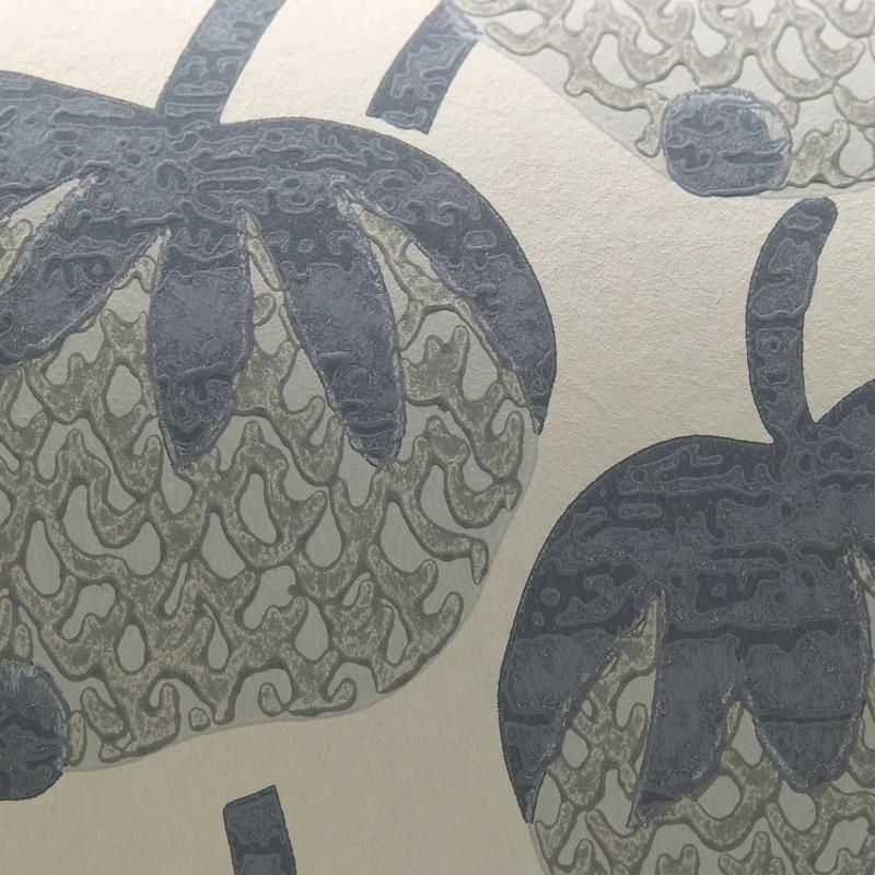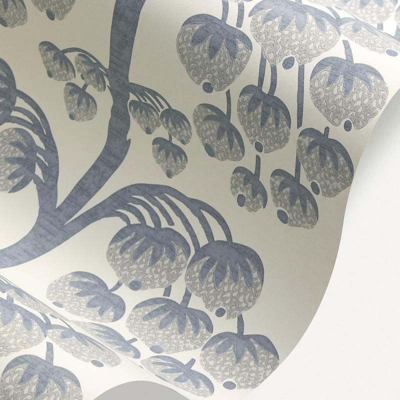 リバティ・デザイン・スタジオで手描きされた壁紙「Berry Tree」(ベリー・ツリー)は、当コレクションの代表的作品です。優美な枝から繊細な直線状に垂れ下がった様式化されたベリーを特徴としており、伝統的な木版印刷効果を模倣した豊かな顔料を使っています。4色展開のうちのグレー。1880年代から1910年代にかけてのアーサー・リバティ卿の異国探検で得た宝物を、シノワズリのモチーフからペルシャ庭園のミニチュア・イラスト、インドのムガール絵画、日本の江戸時代の版画まで伝統的な技法を現代的なアクセントで再解釈したコレクション「BOTANICAL ATLAS」(ボタニカル・アトラス)より。