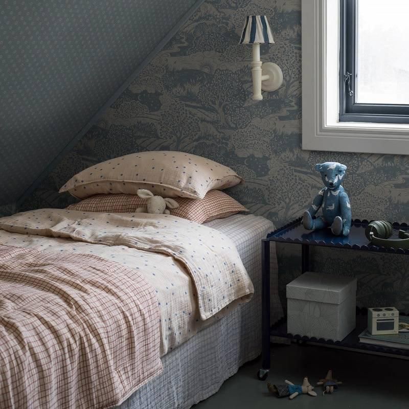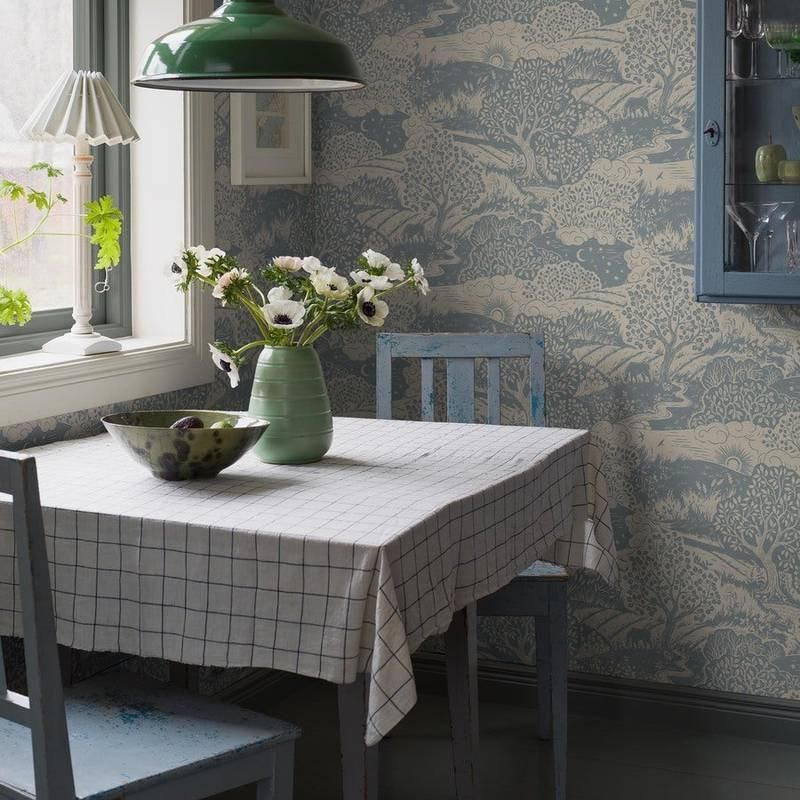 壁紙「SolÄngen」(ソランゲン)は、広がる麦畑や草原、太陽の光に照らされた丘を馬が草を食み、燕が空高く飛び、ウサギが長い草の中に隠れる風景を通じて、自然の美しさを豊かに描いたデザインです。Jenny Hahne Gadd(ジェニー・ハーネ・ガット)さんが手掛けた繊細なパターンで、静けさとリラクゼーションの世界へ誘います。4色展開のうちのライト・ベージュとグレー。北欧の自然美とフォークアートを現代的に表現した「Nordic Folk」コレクションより。