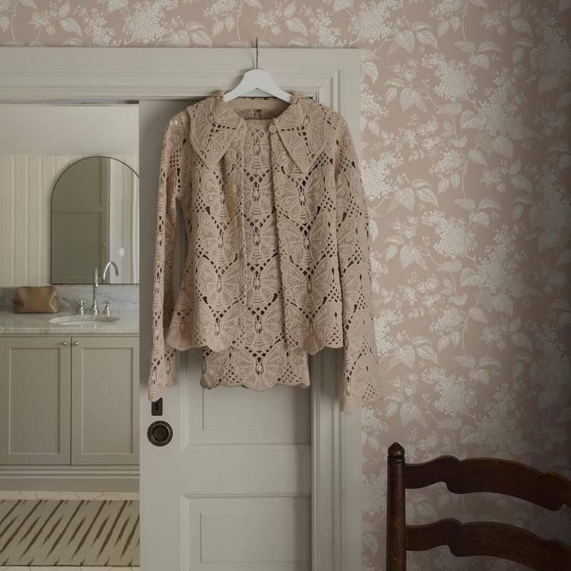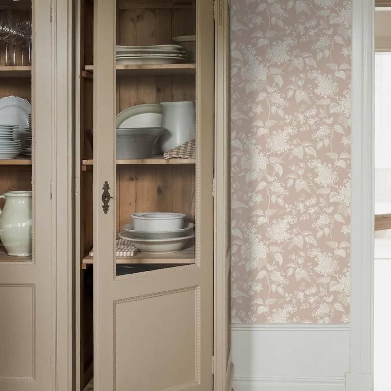 壁紙「Syren」(サイレン)は、小さなバラの繊細なシルエット模様が特徴です。